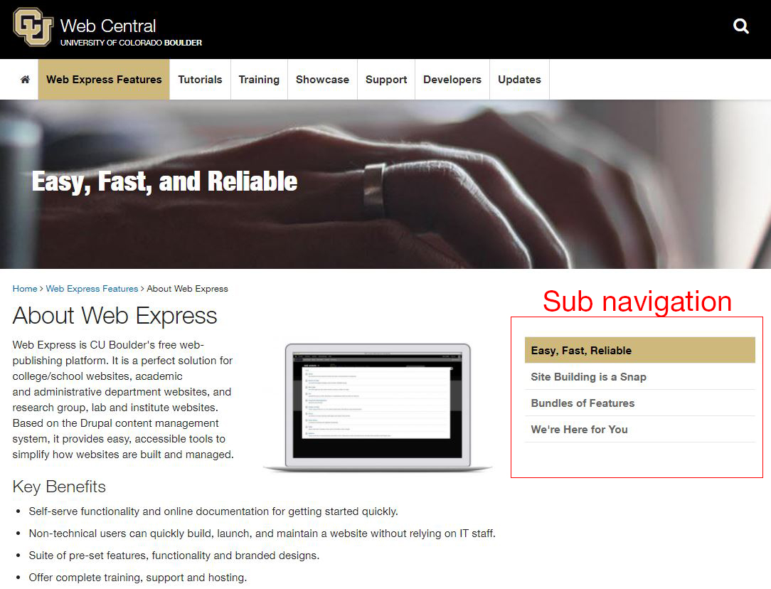 Typically site builders start with creating the main navigation of a site and then add subpages to the main menu items to create sections of content. There are a few ways to add subpages or "child pages" in Web Express.